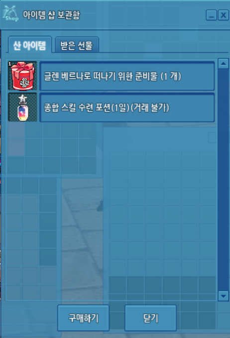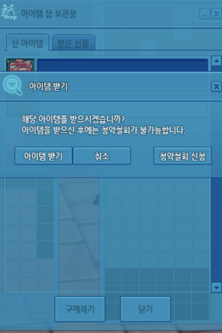 마비노기 게임 접속 후 [아이템 샵 구매] 를 클릭하여 실제 아이템을 수령해 주세요.